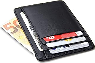 Étui à cartes 100 % cuir véritable, très plat et peu encombrant, pouvant contenir jusqu'à 10 cartes de crédit, avec protection RFID et fenêtre de visualisation, noir