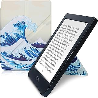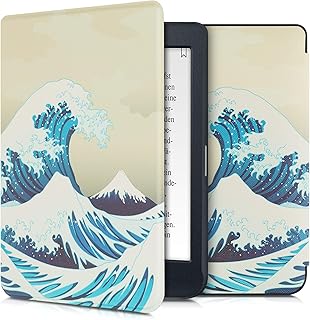 kwmobile Coque Liseuse Compatible avec Kobo Clara HD - Étui à Rabat en Simili Cuir avec Fermeture Magnétique - Belle Vague Japonaise Bleu-Blanc-Beige