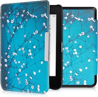 kwmobile Étui liseuse Compatible avec Tolino Shine 3 - Housse avec Rabat magnétique en Simili Cuir - Fleur de Cerisier Blanc-Noir-Bleu