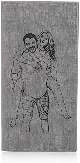 Portefeuille Personnalisé Photo,Portefeuille Homme Cuir,Petit Portefeuille Minimaliste, Alskafashion Portefeuille Gravé (Croquis Gris)