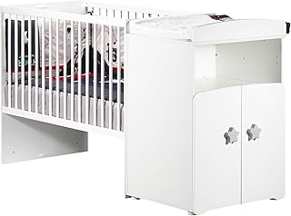 BABY PRICE New Basic Lit Bébé Combiné Évolutif avec Bouton Étoile Gris 120 x 60 cm en 90 x 190 cm
